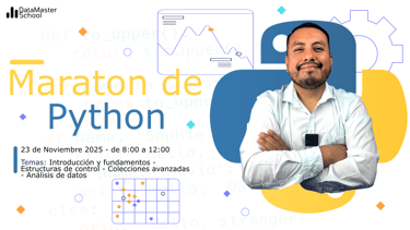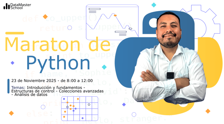 Es un evento gratuito y en vivo de DataMaster School, donde durante 4 horas intensivas aprenderás los fundamentos de Python, desde los primeros pasos con el lenguaje hasta automatización, manipulación de datos y visualización profesional para proyectos reales.